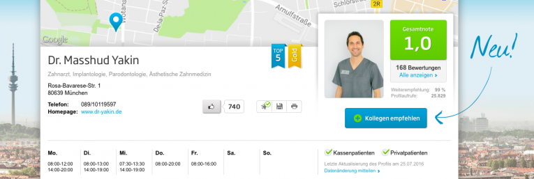 Anfang des Jahres haben wir uns sehr darüber gefreut, dass wir vom Marktführer der medizinischen Bewertungsportale jameda.de erstmals unter den Top 5 der Münchner Zahnärzte geführt wurden …